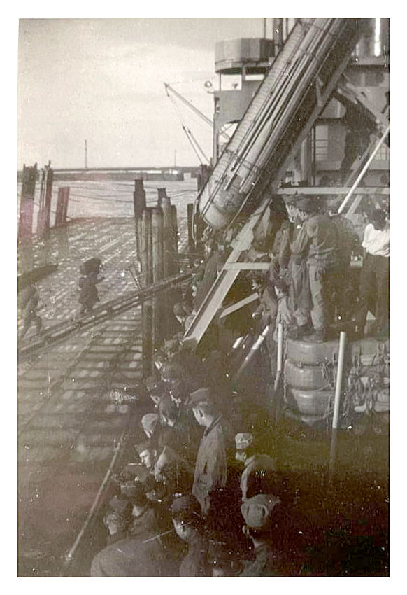 The 442nd Regimental Combat Team arrives at Honolulu aboard Waterbury Victory Auust 6, 1946. |