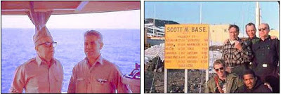 I was able to find only two other photos of Captain Bondeson. The one on the left below shows him on the Michelson's bridge wing to the left of an unidentified person. In the second photo, taken in Antarctica, he is the guy on the right wearing sunglasses. Both images are by Carl Friberg.