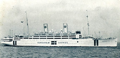 By 1940 both Gripsholm and Kungsholm were repainted to identify them as neutral Swedish vessels. MS Kungsholm (above) in 1940-41 left little doubt about belonging to neutral Sweden.