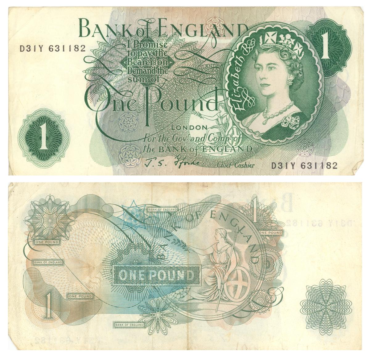 An English one pound note, before the days of decimalization and the Frenchification of Europe (i.e., the EU). It has a picture of the Queen. The one pound note from Malta has a picture of the same Queen. So do Australia and Canada. How come these countries don't have their own Queen?